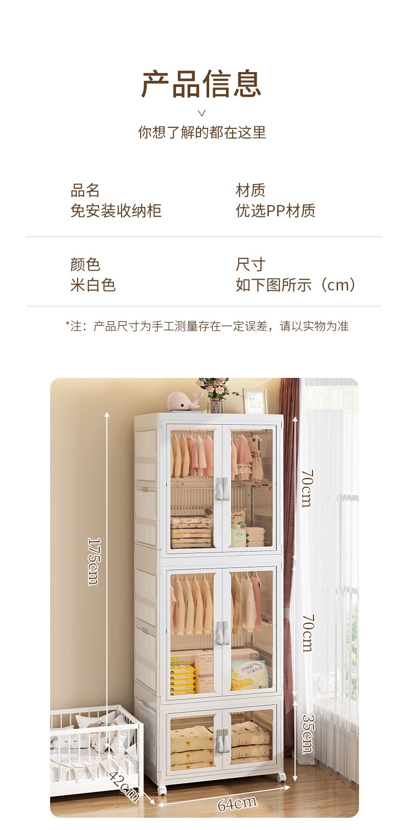 In the family storage, the plastic living room clothes cabinet is an indispensable good helper. Made of high-quality plastic, this clothing cabinet is lightweight and durable, with good waterproof performance, which is ideal for use in living rooms, bedrooms and other living Spaces. Whether it is daily clothing, clutter, or seasonal items, it can be easily handled, providing you with plenty of storage space.