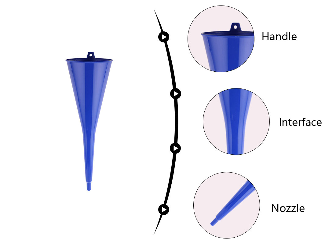 Good Quality and widely used in Motorcycle Farm Machine Long Neck Plastic Car Oil Funnel .OEM is warmly welcomed.