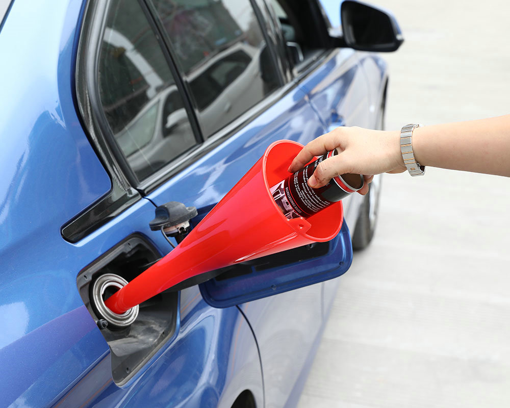 Multi-Purpose funnel fits all sizes of filler tubes extended filler neck opens gas tank trap door