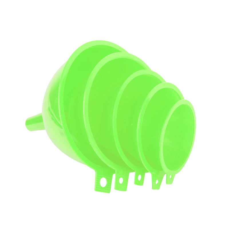 5 piece plastic funnel, used in kitchen etc.Can be used for irrigation oil, irrigation water, juice irrigation drinks.6.8-8.3-9.4 -11-12.5 cm, different sizes for daily use in families.Small caliber is suitable for all kinds of bottles and jars commonly used in family.5 sizes can be purchased together, or any one or several sizes can be selected.High quality, can be customized packaging, color.Logo can be printed.
