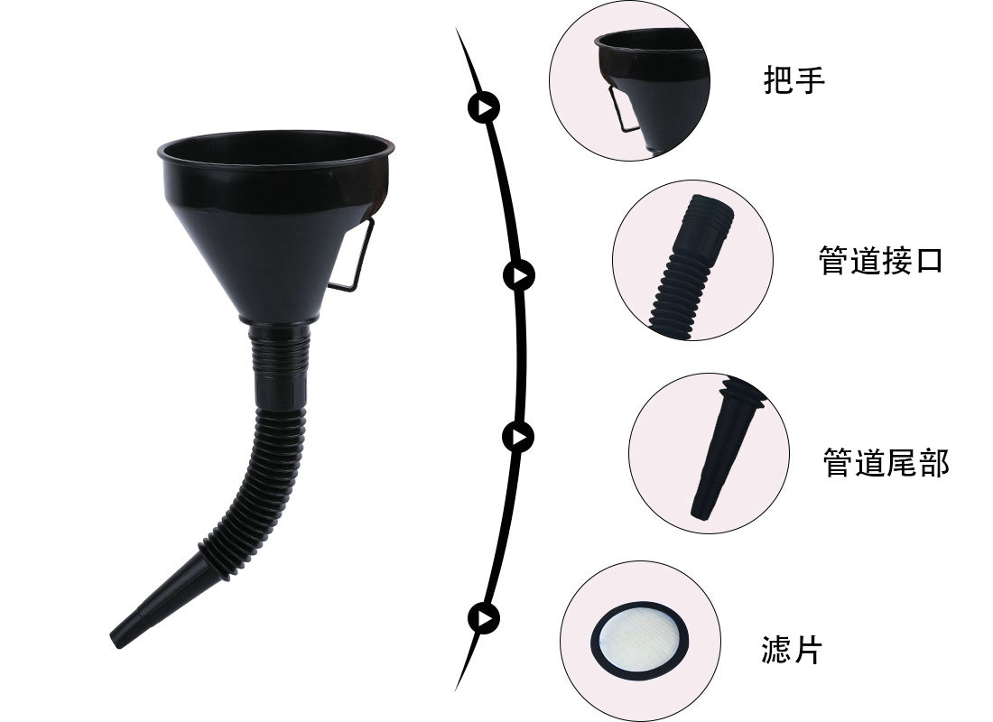 QM启明黑色14.5cm加长软管可折叠车用长塑料漏斗